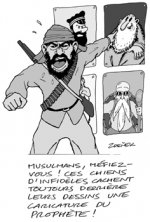 Il est certes inutile d’expliquer aux lanceurs de pierres que Dieu n’existe pas, là n’est pas la question. « Il faut respecter le prophète, le caricaturer comme un poseur de bombes terroriste est scandaleux » nous hurlent des hommes cagoulés, cocktails Molotov à la main. Il arrive que des dessins satiriques soient plus pertinents que de longs développements écrits, et il semble que cette vérité première nous soit vigoureusement assénée par ceux qui prétendent la combattre.